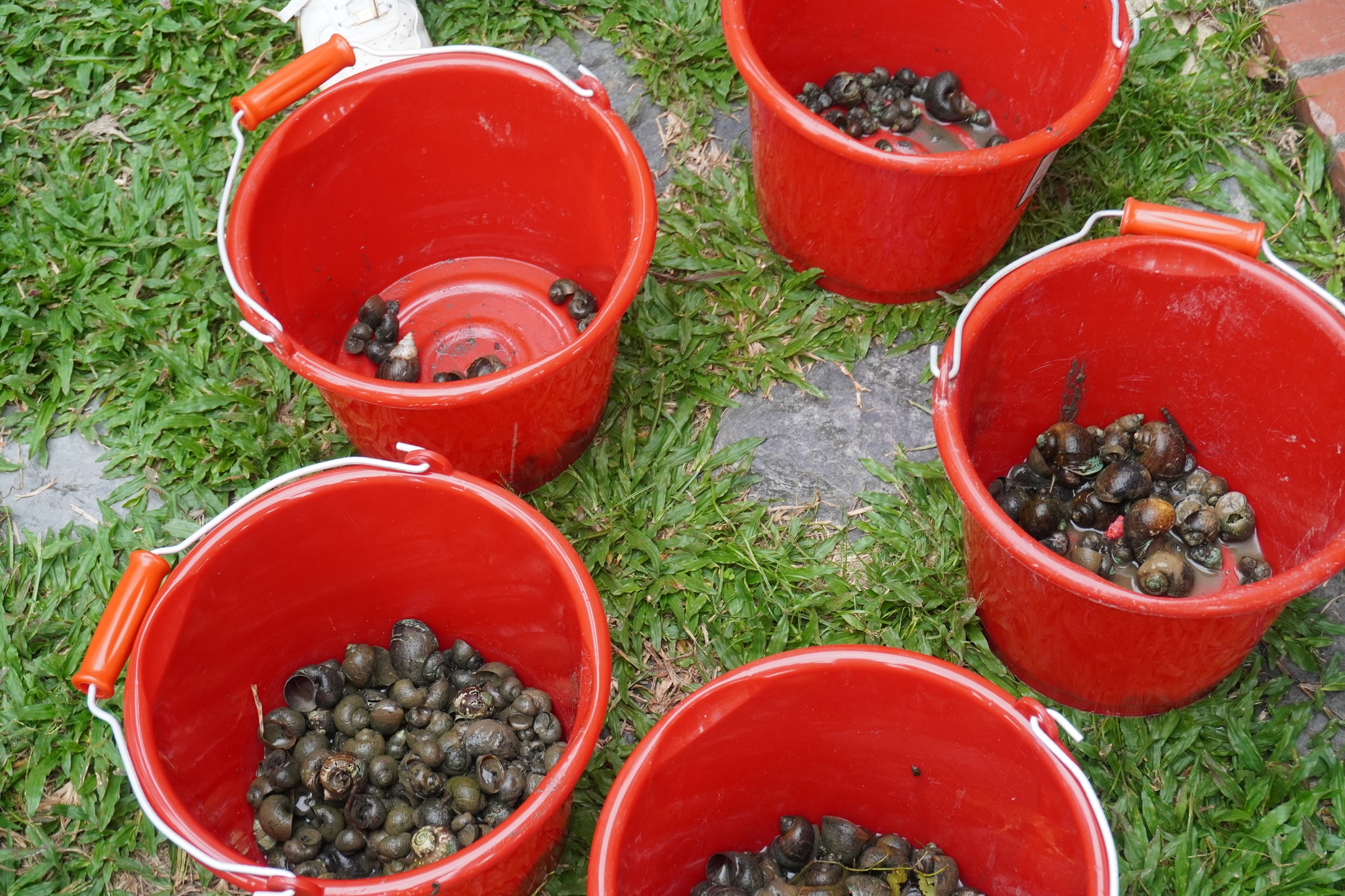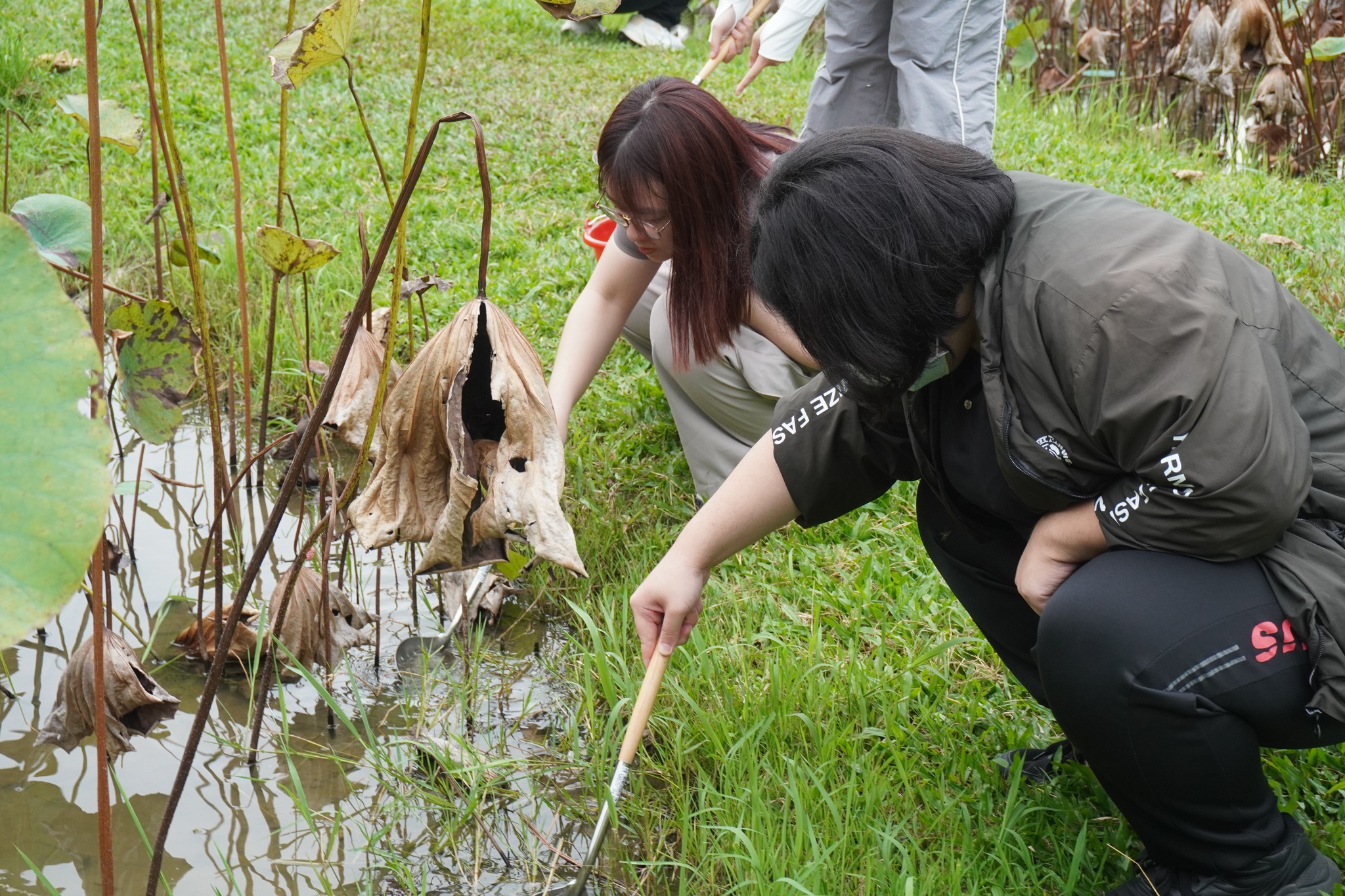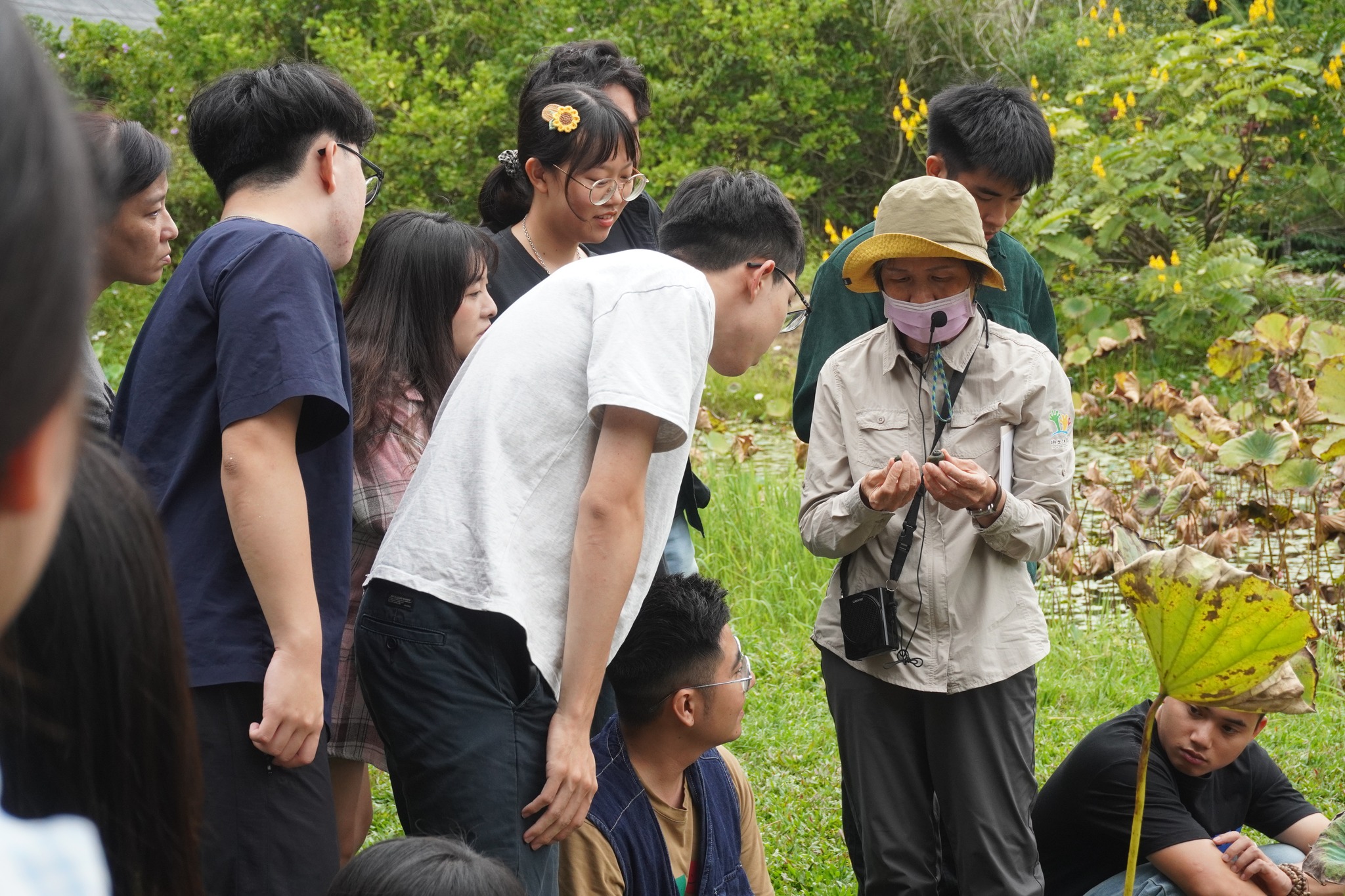 導覽員首先介紹福壽螺對生態系統的危害,隨後大家前往荷花池親手清除牠們。過程中各組積極尋找、比賽挖掘,氣氛熱烈,挖得最多的一組還能獲得當地特產「地瓜奶油冰淇淋」禮券作為獎勵。